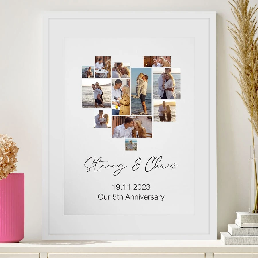 Turn the sweetest moments of your relationships into a piece of art with our Multi Photo Upload Framed Print for Anniversaries – Photo Heart.