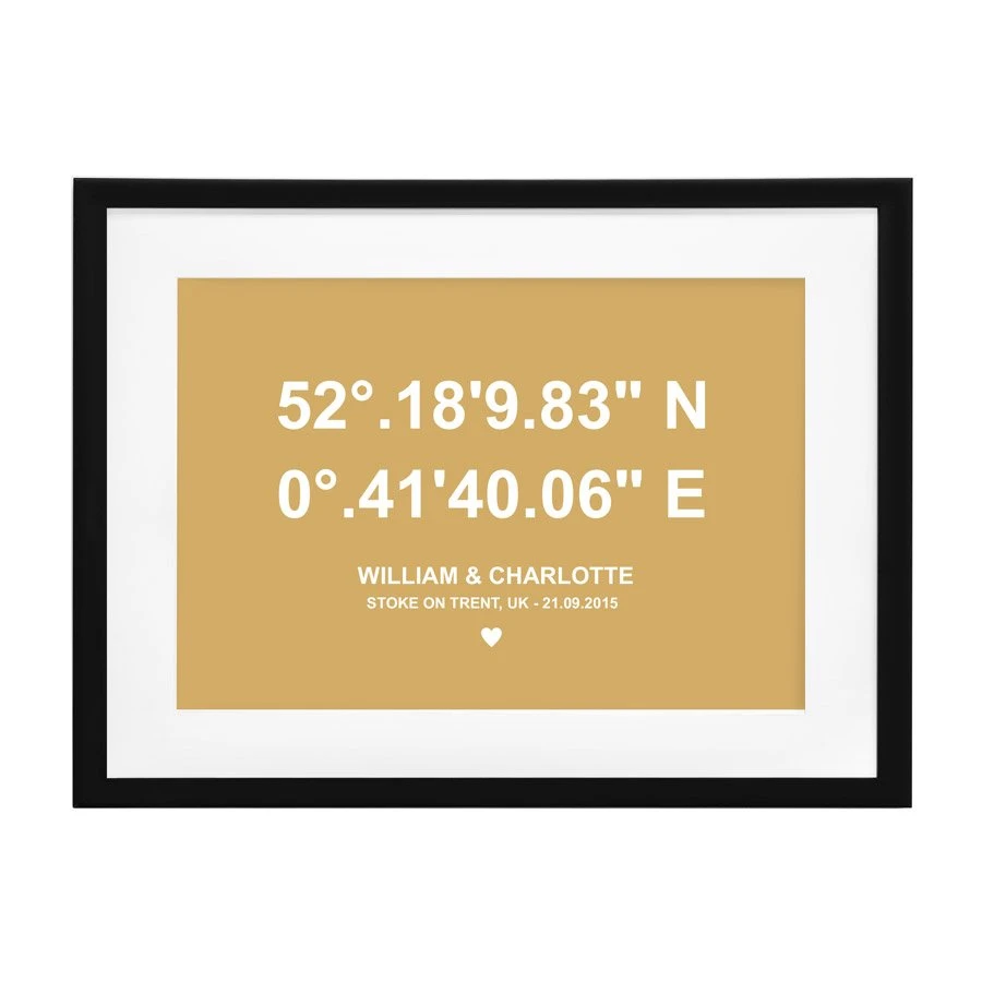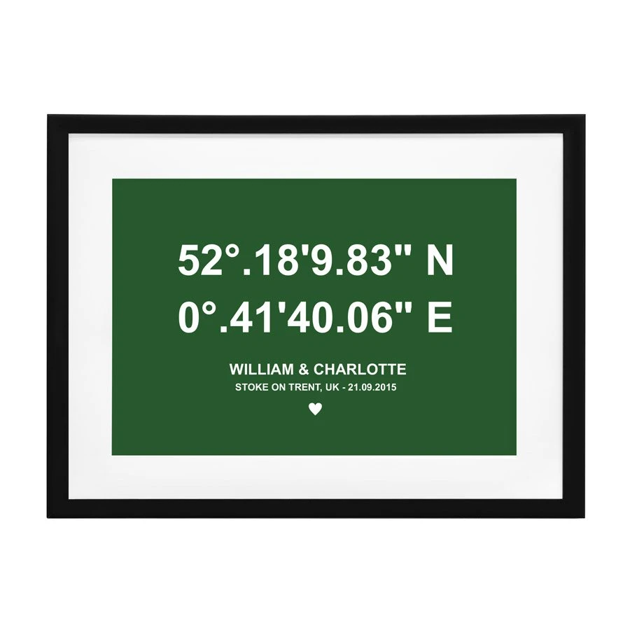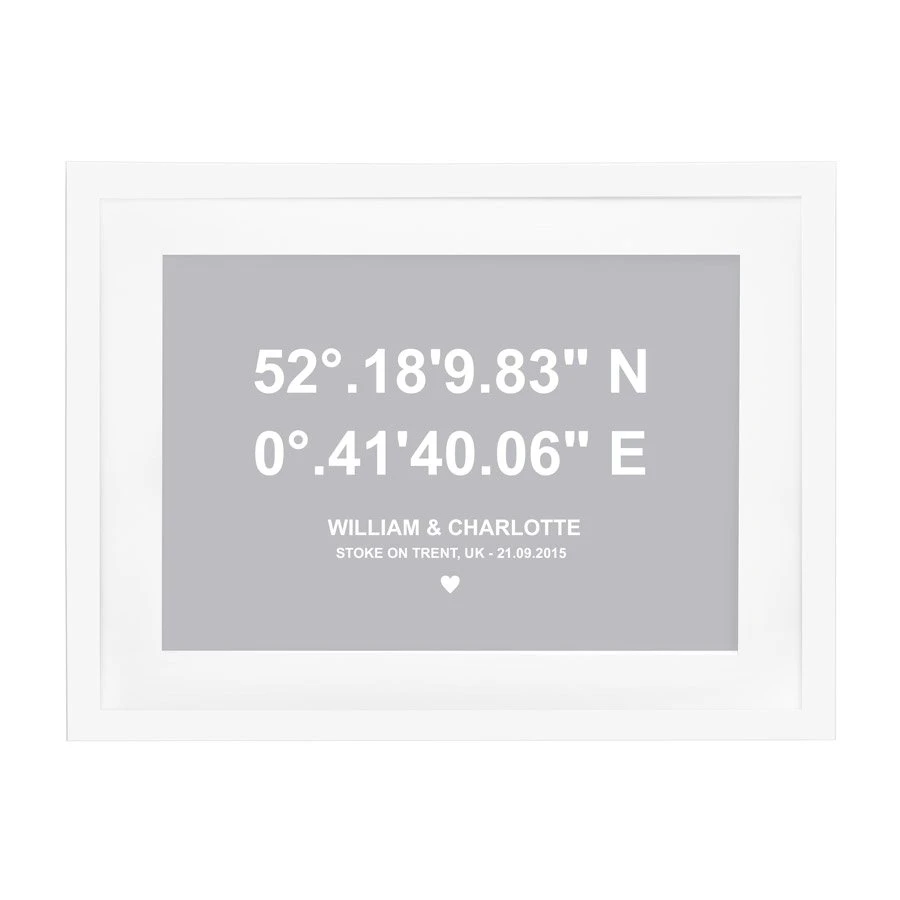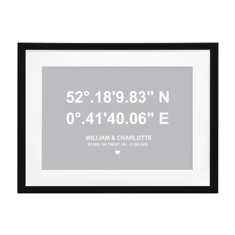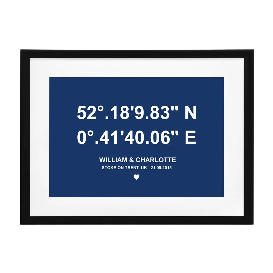 Designed to draw attention to special location that means the most to you, it’s printed with the geographical coordinates of your choice onto premium art paper.