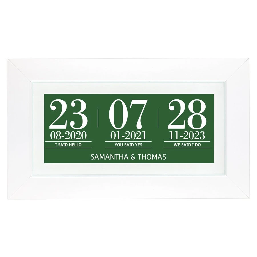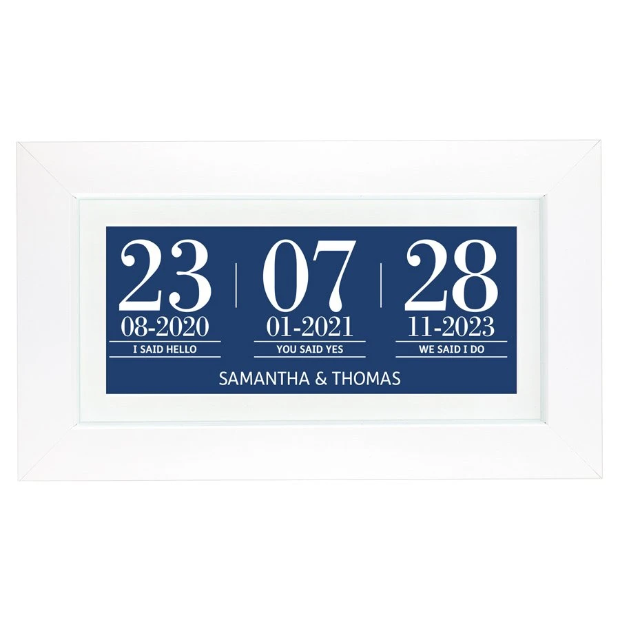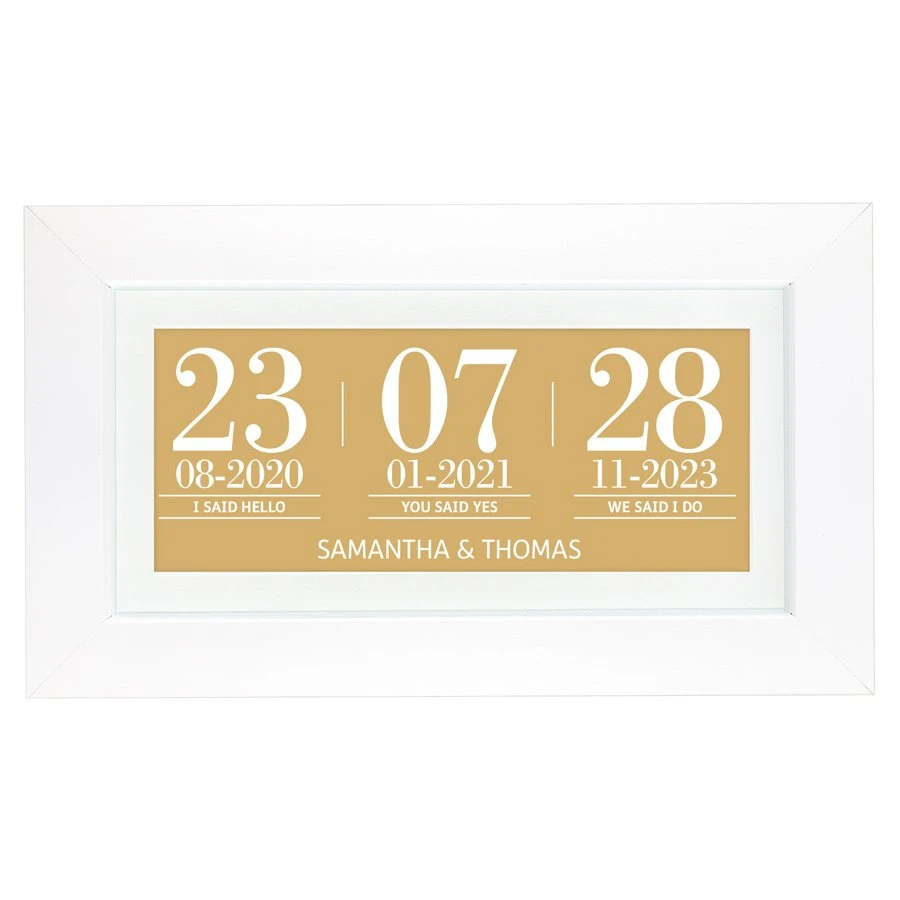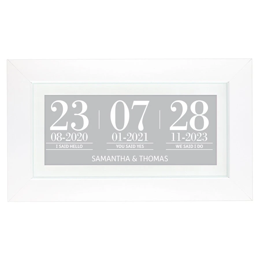 Showcase the key moments in your journey as a couple with our Personalised Anniversary Dates Box Frame.