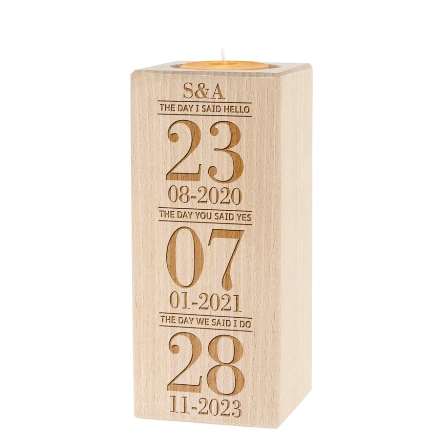 Celebrate the milestones in your love story with our Personalised Anniversary Wooden Tealight Holder.
