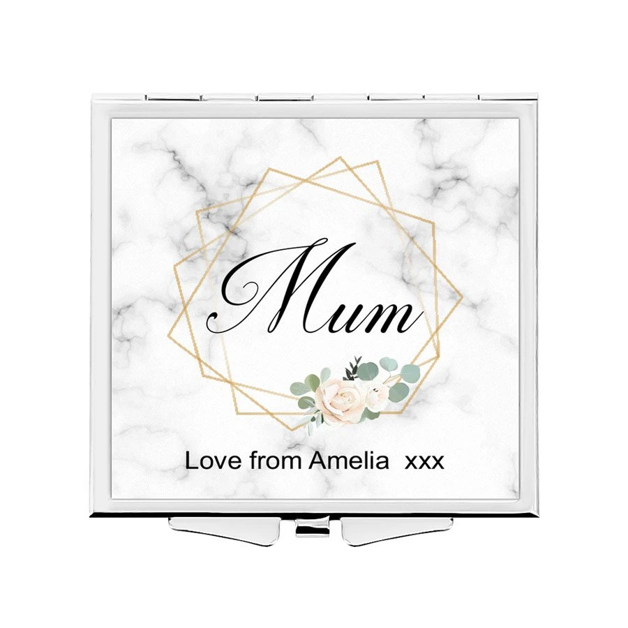 - Personalised geometric & marble compact mirror