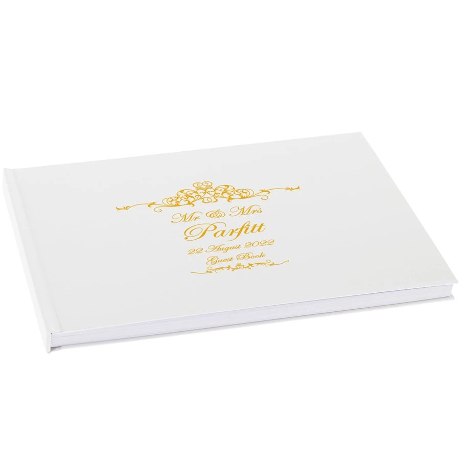 Perfect for a traditional wedding, our Personalised Guest Book – Gold Ornate Swirl Design is a charming gift for the couple in question. A wedding isn’t complete without a space for loved ones to write their well wishes.