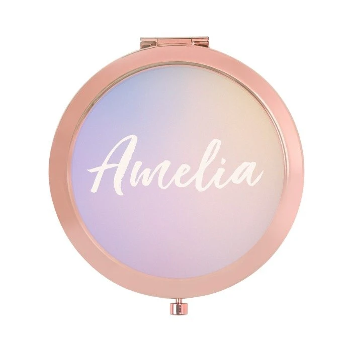 Put a personal stamp on the gift you give for that next big occasion and treat a loved one to this exquisite Personalised Rose Gold Compact Mirror – Name.