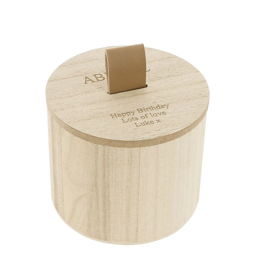 A sturdy lid helps to keep any contents safe and can be lifted up using the strap handle in the centre. What really makes each beautiful box special, though, is the engraving that also sits proudly on the lid.
