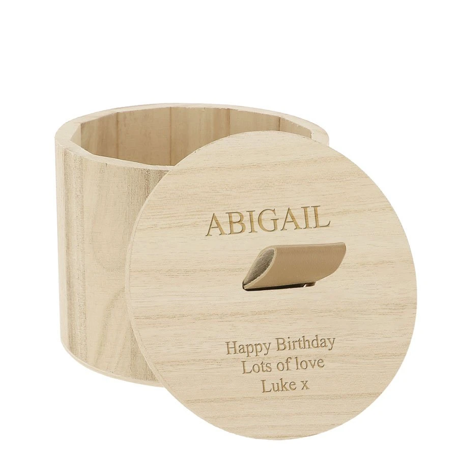 This gorgeous Personalised Round Trinket Box – Name & Message is a perfect present to show a special someone just how much they mean to you.