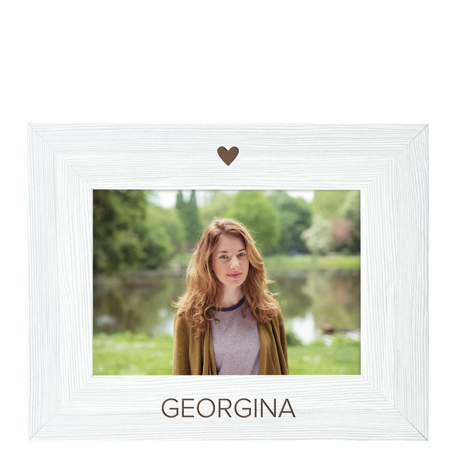 To make the gift your own, you can add any name or nickname of your choice. This will be expertly engraved across the gorgeous white-washed wooden frame beneath the space for your photograph.