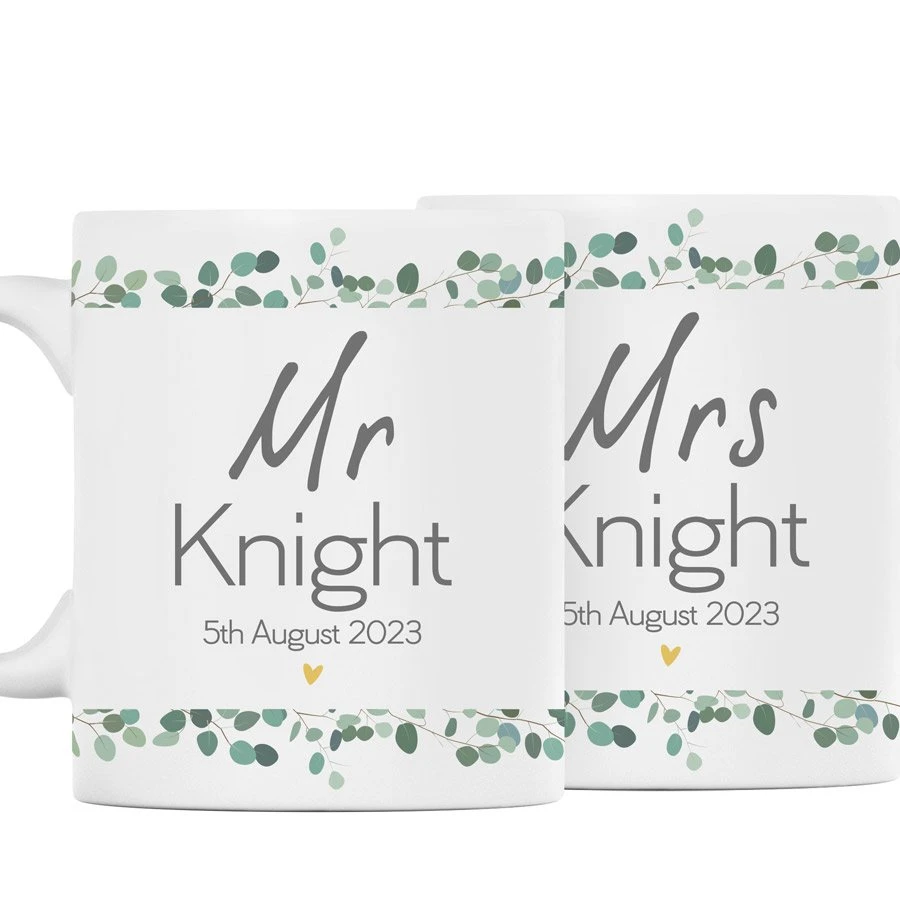 - Personalised Wedding Wreath Mug Set