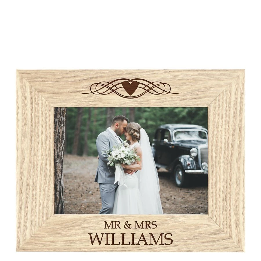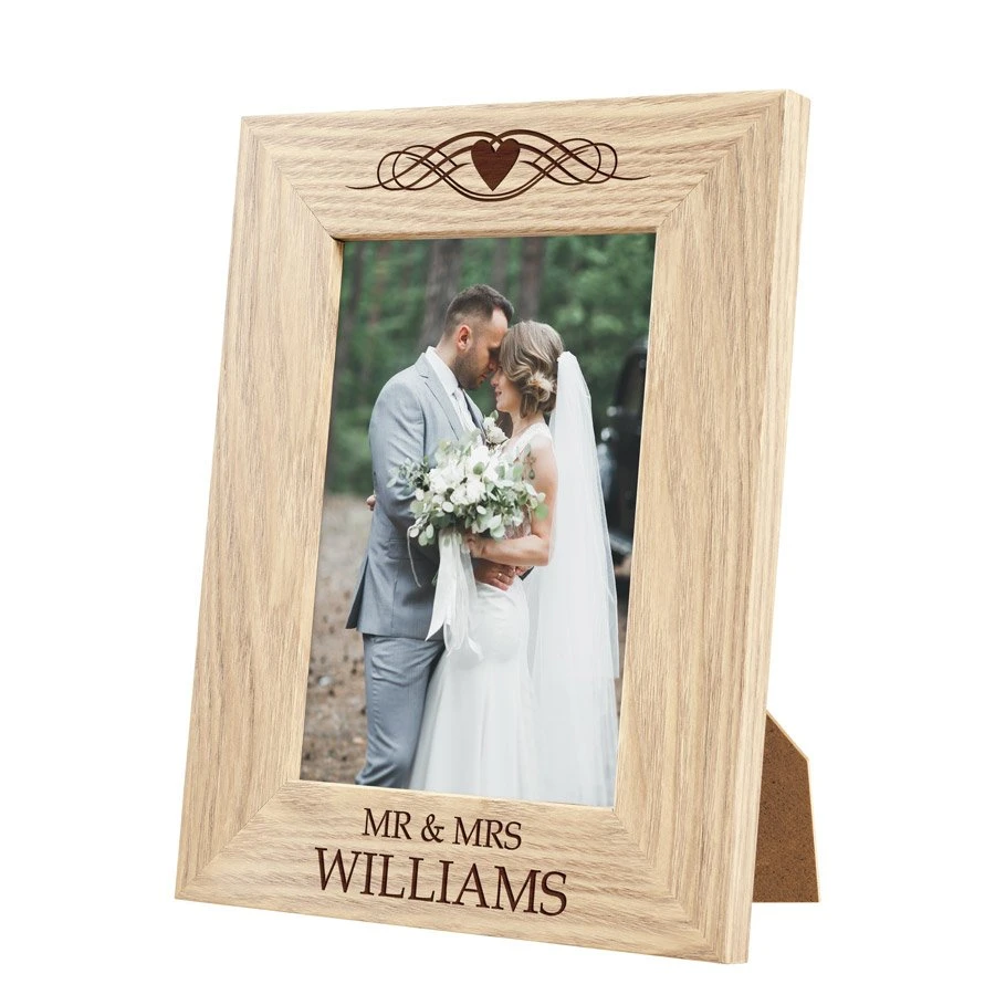 Celebrate love in chic and sophisticated style with the help of this sensational Personalised Wooden Photo Frame – Heart & Swirl Design.